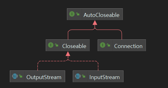 try-with-reources 구문에서 자동으로 자원을 close 해주려면 해당 자원(resource)이 AutoCloseable 인터페이스를 구현해야 합니다. AutoCloseable은 단순히 void를 반환하는 close메서드 하나만 정의되어있는 인터페이스입니다.